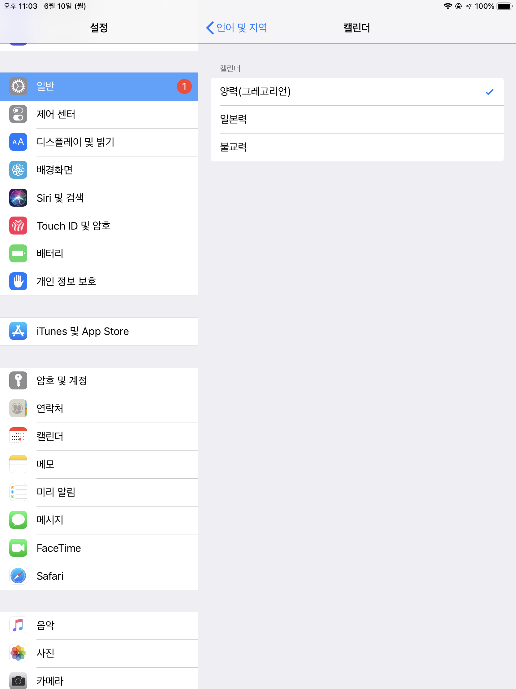 [설정] - [언어 및 지역] - [캘린더] - [양력(그레고리언)]으로 변경해주면 된다. :D